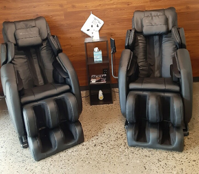 Free Time Fitness 24/7 is equipped with a chair massage lounge at ALL locations! Starts in your neck and shoulders and finishes at your toes for a full Shiatsu Massage leaving you relaxed and rejuvenated! Provides relief in your shoulders, back, hands, arms, buttocks, hips, thighs and calves.